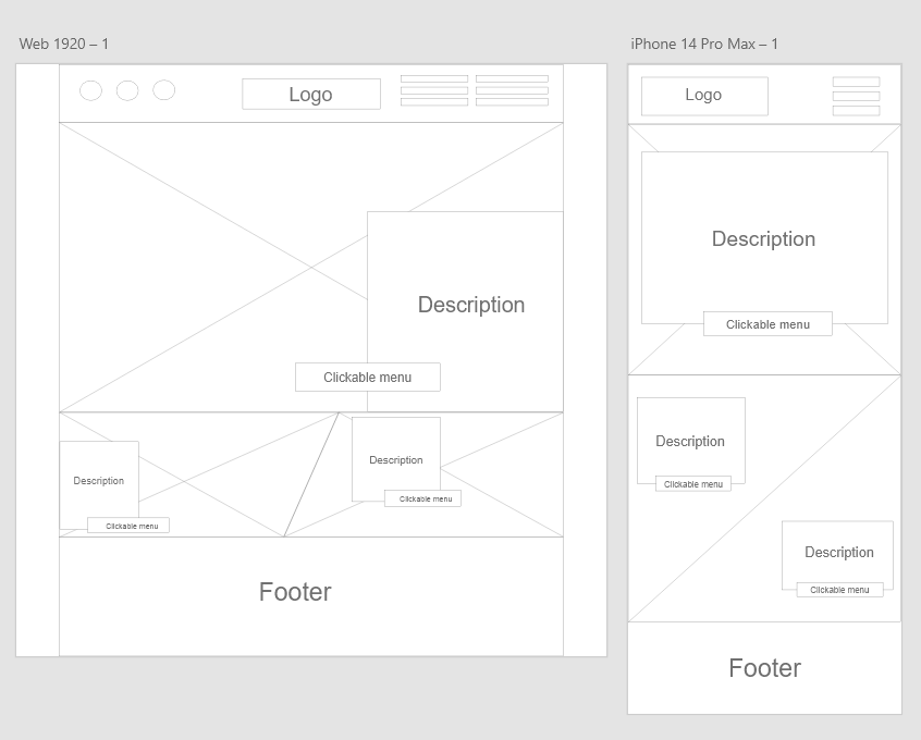 Wireframes can be presented and constructed in different ways, most commonly they can either be developed either digitally in Adobe XD for example or non-digitally which is through sketches on paper. However, I’ve created two versions so that I am comfortable working with both types of wireframes. It is also common to work with both versions of wireframing for the same project, as most web designers would start of sketching out different versions of their web layout before moving on to a digital version where they can adjust the components more precisely.