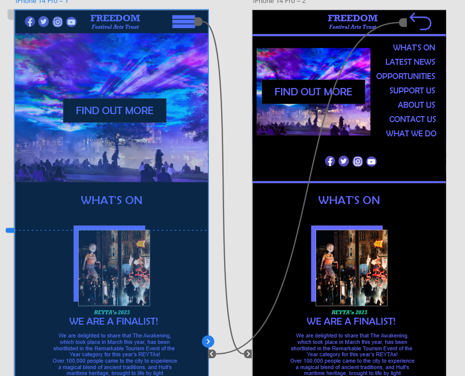 As you can see, I simply created two artboards showcasing both versions of the web interface and simply connecting the relevant icons for this interactivity feature with each other across the two artboards. Whilst this being a mock up example, I’m planning on implementing this feature in my final design.