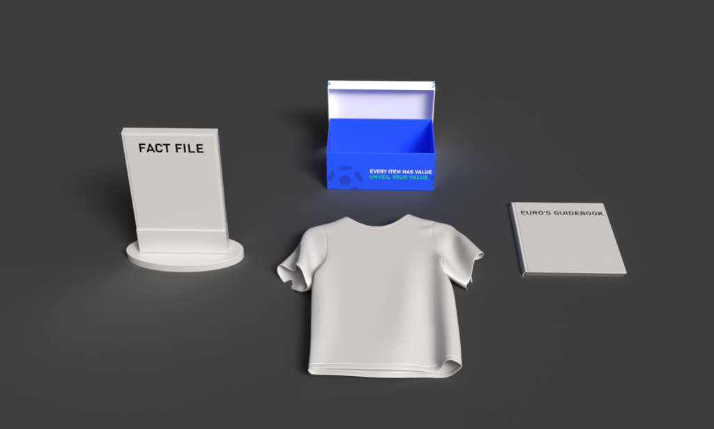 To take my mystery box idea further I had to produce 3D models of products relating to my branding which is revealed from a mystery box I’ve designed in the previous task. As mentioned before, my branding is revolved around football more specifically the upcoming euro 2024 campaign. Therefore, I decided to create three simple 3D products belonging to the mystery box brand that I will develop in my next stage by applying texture and branding design. As you can see they consist of a jersey alongside a sign that is essentially a fact file about the jersey’s nation which is an inspiration I’ve took from an existing football shirts mystery box brand as they have a basic information leaflet about each jersey’s club. The 3rd item is a Euro 2024 guidebook that gives the buyers a preview and essentially everything they need to know about the upcoming competition such as the schedule with the fixture list. The guidebook product can also be very useful for a different target audience as those who don’t have a great knowledge about the competition can read into it. Overall, this brand is a great marketing tool for the upcoming euro’s campaign spreading the merchandise and competitions info to both intended audience of football fans and non-football fans who may want to become new fans of the sport.