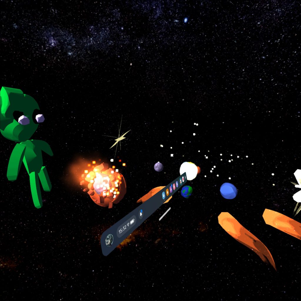 We then as a group decided to create another scene in Open Brush after getting familiar with the basics of the software. We decided to create a solar system scene as each of us in the group took turns to add a creation to the scene such as planets and asteroids. We’ve used the background settings to set a space environment where we then successfully implemented 3D VR solar system models. As discussed before, technical difficulties such as scene perspective can be common when dealing with VR art, and we can see this through our project screenshots that some assets are slightly all over the place and can be spaced out better to showcase a clear solar system scene.