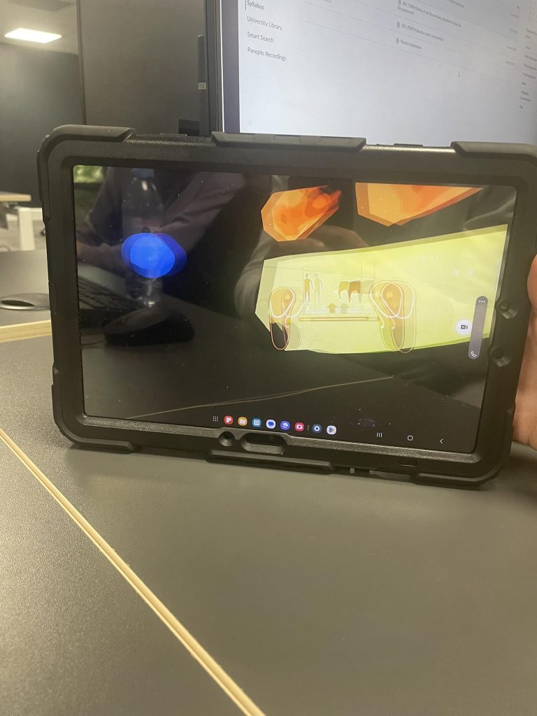 In addition, the rest of us could monitor the perspective of the other person actively using Open Brush through an iPad, this was useful in the group exercise as we could provide each other feedback whilst one of us is actively constructing something in Open Brush.